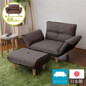 【クーポン配布中】日本製 リクライニングソファー/カウチソファー 【1人掛け オットマン付き ダリアン生地 ベージュ】 脚部:ブラウン 幅88cm 脚付き 国産 ソファ ソファー おしゃれ ポケットコイル ローソファ 北欧 リビング ひとり暮らし 【代引不可】