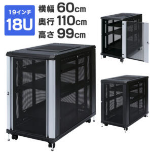 【商品詳細】セキュリティ対策に最適。コンパクト19インチサーバーラック(18U)●SOHOや小規模オフィスのサーバー機器の収納に最適です。●前扉、側部背部には標準で鍵を装備。セキュリティ対策ができます。●全面メッシュパネルを採用している為、放熱性に優れています。●棚板2枚、スライド棚1枚が標準装備です。●熱対策用の放熱ファンの装着が可能です。(最大6台まで)※CP-FANS38シリーズ、CP-FANSを別途ご購入下さい。●マウントアングルはEIA規格ユニバーサルピッチを採用し、ケージナットに対応しています。●マウントフレームにはマウント位置がわかりやすく各ユニットが印字されています。●マウント有効内寸700〜780mmです。●マウント数:18U※組立の際には電動式ドライバーのご使用をお薦めいたします。■サイズ:W600×D1100×H990mm重量92kg■梱包:6個口■出荷形態:ノックダウン組立式■材質:スチール(エポキシ粉体塗装)■セット内容:本体フレーム、前扉・後扉(鍵付)、側面パネル(鍵付)、19インチマウントアングル(前後)、固定棚×2枚、スライド棚×1枚、キャスター、アジャスター、ケージナット・ネジ(M6・50セット)鍵×2個(1種類)※前後左右共通【代引きについて】こちらの商品は、代引きでの出荷は受け付けておりません。【送料について】北海道、沖縄、離島は送料を頂きます。【クレジットカードご利用について】※ご注文の際にお客様の本人確認(電話/メール確認等)をお願いする場合がございます。【クレジットカードご利用について】※ご注文の際にお客様の本人確認(電話/メール確認等)をお願いする場合がございます。
