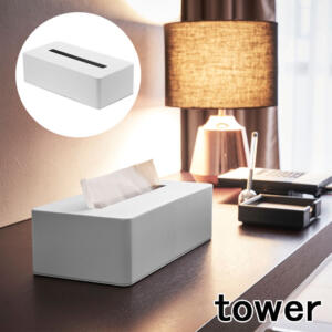 山崎実業(Yamazaki) ティッシュケース ホワイト サイズ:約W26.5XD13.5XH7.5cm tower 4215