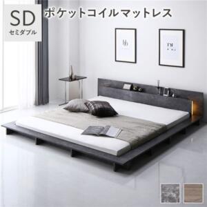 照明付き フロアステージ ベッド ダブル グレージュ ボンネルコイルマットレス付き 宮付き 宮棚付き ヘッドボード付き ライト付き 2口コンセント付き すのこベッド ローベッド フロアベッド ベッドフレーム インテリア家具 寝室家具 組立品