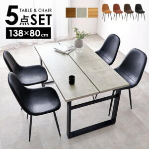 商品説明★ スタイリッシュなデザインのテーブルにヴィンテージ調の合成皮革を使用したチェアを合わせたダイニングセットスペック* サイズ…・テーブル:(約)幅138×奥行80×高さ70cm・チェアー:(約)幅48×奥行56×高さ84.5×座面高43cm* 材質…・天板:合成樹脂化粧繊維板(メラミン樹脂)・座面:積層材・張地:合成皮革・クッション材:ウレタンフォーム・脚部:スチール* 組立式* アジャスター付(テーブル)* 中棚付* 生産国:中国製