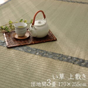 商品詳細 サイズ 本間4.5畳(約286×286cm) 組成 生地=い草(九州産) ※双目織 ヘリ=ポリプロピレン、ポリエチレン 原産国 日本製 洗濯表示 洗えません。 ■ 上敷きを敷くだけで畳のお部屋をリフレッシュ出来ます。日焼けしてしまった畳のリフレッシュに、新品の畳を汚さないためのカバーにご使用下さい。 ■ 長さ105〜110cmの国産(九州産)い草を使用しています。そのうち約88cmを使用しています。 ■ ヘリ際は強く白みを帯びます(日焼けではありません、い草の根元と先端部分の色です。)が、安価でお求めやすい商品です。 ■ い草は長いものほど高級になります。い草は先端部分が赤茶色く、根元が白く真中が青(緑)色です。真中の良質な青の部分を多く使用するほど、丈夫で綺麗な仕上がりとなります。またイ草は使用するうちに日焼けをしますが、真中の青の部分を多く使用したものほど、全体が綺麗にムラなく日焼けし、味が出ます。 ■ 国産(九州産)のい草を使用しています。国産い草は一本一本が太く、表皮が厚く繊維がキメ細かいので弾力性があり、耐久性に優れています。い草には空気の清浄化作用、湿度の調節作用があり、汚れにくいといった特徴があります。 ■ い草にヒバ加工を施しています。(抗菌防臭効果) ■ 表裏の両面が使えて経済的です。 ※ 掲載写真は表記サイズと異なる場合がございます。 ※ 画面上のカラーはご使用ブラウザやモニターの設定により、実物とは若干異なる場合がございます。あらかじめご了承の上、ご注文をお願いいたします。※画像は江戸間4.5畳サイズです。