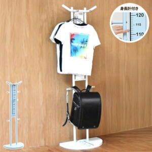 キッズ身長計・フットサイズ計付きハンガー ONLS0231 身長計付きランドセルラック ハンガーラック 身長計ハンガー ランドセルラック ポールハンガー 壁 木製 天然木 ブナ キッズ用 子供用 子ども用身長計 ランドセル収納 身長