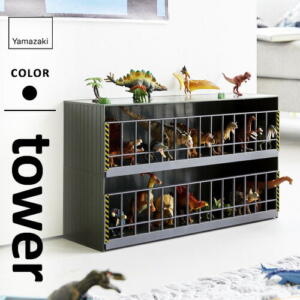 [ tower 恐竜&アニマル収納ケージ タワー ワイド 2段 ] 山崎実業 タワー 収納 整理整頓 おもちゃ収納 ホビー キッズ 人形 動物 フィギュア 置物 ダイナソー こども 大量 並べて ディスプレイ 棚 ラック 収納棚 収集 グレー 5808 グリーン 5809