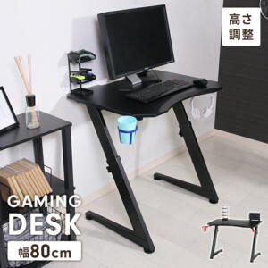 デスク ゲーミングデスク 高さ調整可能 幅80 奥行63 パソコンデスク キッズ用 多機能 スタンド ホルダー フック シンプル