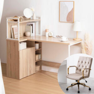 大容量収納でデスク周りがすっきり片付く、収納とデスク一体型のL字収納・棚付きデスク■サイズ
