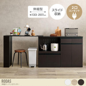 伸縮式 キッチンカウンター 幅133-207cm 収納庫タイプ キャビネット ( 伸縮 カウンター 収納 キッチン 棚 ラック 家電収納 )
