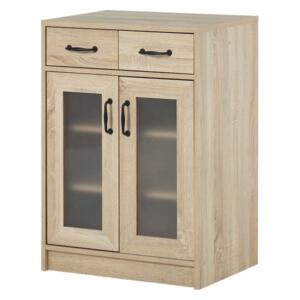 キッチン収納 食器棚 キッチンラック キッチンボード キャビネット 作業台 レンジ台 扉収納 棚 木目調 可動棚 3cmピッチ コンパクト 扉付き スリム
