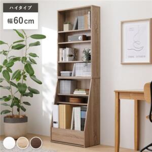 ■サイズ・色違い・関連商品■ロータイプ 約60cm幅 ダークブラウン■ロータイプ 約60cm幅 ナチュラル■ロータイプ 約60cm幅 ホワイト■ロータイプ 約90cm幅 ダークブラウン■ロータイプ 約90cm幅 ナチュラル■ロータイプ 約90cm幅 ホワイト■ハイタイプ 約60cm幅 ダークブラウン■ハイタイプ 約60cm幅 ナチュラル■ハイタイプ 約60cm幅 ホワイト[当ページ]■ハイタイプ 約90cm幅 ダークブラウン■ハイタイプ 約90cm幅 ナチュラル■ハイタイプ 約90cm幅 ホワイト関連商品の検索結果一覧はこちら■商品内容※こちらは「ハイタイプ 60cm幅」の商品ページです。Slim Bookshelf引き出し付き 薄型ブックシェルフ幅60cm/幅90cm■引き出し付き 薄型ブックシェルフ・選べる幅と収納力 幅60cm:コミック約300冊 幅90cm:コミック約460冊・無駄なく使える1cmピッチの可動棚・日用品や雑貨を収納できる引き出し収納・A4サイズの雑誌や鞄なども収納できる奥行26cmの下棚■選べる幅HIGH TYPE 高さ175cm幅60cm/幅90cm■大容量の収納力可動棚を均等に取り付けると、四六判サイズまでの本が7段すべてにぴったり収納できます!・幅60cm 文庫本:約340冊 コミック:約300冊 四六判:約200冊・幅90cm 文庫本:約520冊 コミック:約460冊 四六判:約320冊※画像はコミックサイズの本を収納している画像になります。※収納冊数は目安です。収納する本のサイズによって多少前後する場合がございます。■無駄なく使える1cm刻みの可動棚収納する物に合わせて、細かく調節できる可動棚で、無駄な隙間を作りません。・可動棚上部 60段階・1cmピッチ 棚板:3枚・可動棚下部 40段階・1cmピッチ 棚板:2枚■可動棚上部(60段階)文庫本からA5版まで、さまざまな本のサイズに合わせて、無駄なスペースができないぴったりの位置に棚板を調節できます。・60段階調節・1cmピッチ■可動棚下部(40段階)一番下の棚は奥行があるので、A4ファイルや雑誌も収納できます。・40段階調節・1cmピッチ・最下段は前後2列収納も可能・雑誌・A4ファイルの収納にも■奥行26cmの使い勝手の良い下棚下棚は、奥行があるので、籠やかさばる雑貨などの収納にも便利。■引き出し収納散らかりがちな日用品も、引き出しにすっきり収納できます。・スライドレール式■子ども部屋の本棚として下棚にはランドセル、引き出しにはハーモニカや学用品も収まります。■圧迫感の無いスリムなデザイン奥行の浅いスリムなデザインで、寝室や一人暮らしのワンルームにも圧迫感なく設置できます。■背面化粧で後ろ姿も美しくデザイン性を損なわないネジ穴隠しシール付き※画像は90cm幅になります。■安心・安全にお使い頂くために横揺れ・転倒防止対策転倒を防止する壁付けプレート付き横揺れを抑える背面補強パーツ付き■お気に入りを美しく並べて。■Color Variation・ホワイト・ナチュラル・ダークブラウン ※ホワイトは木目の無いデザインです ※ナチュラルは本物の古木のような風合いを出すため、のこぎり刃跡まで再現しています■Slim Bookshelf SeriesHIGH TYPE 幅60cmHIGH TYPE 幅90cmLOW TYPE 幅60cmLOW TYPE 幅90cm■梱包サイズと組み立てについて・梱包サイズ 2個口でお届けします (1)96×24×15cm・11kg (2)90×35×15cm・15.5kg・大人2人以上で組み立ててください・ハンマーとプラスドライバーをご用意ください・電動ドライバーでの組み立てをおすすめ ※付属しません■商品スペック■サイズ・重量(約) ハイタイプ 60cm幅:幅60×奥行30×高さ175cm・25.5kg ハイタイプ 90cm幅:幅90×奥行30×高さ175cm・38kg■材質 主材:プリント紙化粧パーティクルボード■耐荷重(約) ※60cm幅・90cm幅共通 可動棚上部 各10kg、可動棚下部 各10kg、固定棚最下部 15kg■カラー ダークブラウン、ナチュラル、ホワイト■生産国 マレーシア■その他仕様・可動棚 60cm幅:可動棚上部 60段階調節(1cmピッチ)/可動棚3枚、可動棚下部 40段階調節(1cmピッチ)/可動棚2枚 90cm幅:可動棚上部 60段階調節(1cmピッチ)/可動棚6枚、可動棚下部 40段階調節(1cmピッチ)/可動棚4枚・背面補強パーツ付き・ネジ穴隠しシール付き・転倒防止壁付けプレート付き(ハイタイプのみ)■梱包サイズ・重量(約) 梱包数:2 ハイタイプ 60cm幅:(1)幅96×奥行24×高さ15cm・11kg、(2)幅90×奥行35×高さ15cm・15.5kg ハイタイプ 90cm幅:(1)幅98×奥行27×高さ17cm・17kg、(2)幅96.5×奥行35×高さ17cm・22kg■商品に関するご注意※こちらは「ハイタイプ 60cm幅」の商品ページです。※ホワイトは木目無しのデザインになります。※ナチュラルは本物の古木のような風合いを出すため、のこぎり刃跡まで再現しています。・ハイタイプは上部・下部を連結してお使いいただく仕様です。・本商品はお客様にて組立ての作業が必要となります。 ‐大人2人以上で組み立ててください。 ‐ハンマーとプラスドライバーをご用意ください。 ‐電動ドライバーでの組み立てをおすすめします。※付属はしておりません。 ‐商品の組み立て開始前に部材不足、破損がないか必ずご確認ください。・画像や商品情報には、色違いやサイズ違いの商品が載っている場合がございます。ご注文前