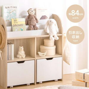 ■商品サイズ幅84cm×奥行29.5cm×高さ90cm (両サイドのフックを含む幅:89cm)■素材パーティクルボード(メラミンシート貼り)密度ボード■重量約21.6kg■耐荷重各棚・フック 約15kg■備考組立品※プラスドライバーをご用意ください。【代引きについて】こちらの商品は、代引きでの出荷は受け付けておりません。【送料について】北海道、沖縄、離島は送料を頂きます。絵本棚 幅84cmオープン収納タイプ引き出し収納タイプ