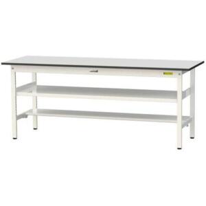 ■ヤマテック 中量作業台 ワークテーブル500シリーズ 固定式 中間棚・全面棚板付 塩ビシート天板 W1800×D600×H740mm アイボリー/ヤマテックアイボリー〔品番:SJR1860TTS2II〕【6969671:0】[法人・事業所限定][外直送元][店頭受取不可]
