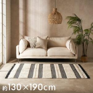 Belinna ラグ カーペット ラグマット ヘリンボーン柄 秋 夏 滑り止め付き 防音 厚手 洗えるラグ 北欧風 抗菌 防ダニ 防臭 軽量設計 オールシーズン適用 素肌にやさしい おしゃれ 床暖房対応 床保護 転倒を防ぐ 130×190cm 1.5畳 ベージュ