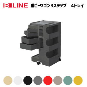 ボビーワゴン 3段2トレイ B-LINE ジョエ・コロンボ デスク脇のスペースで『必要なモノを無駄なく効率的に収納できないか?』という疑問から誕生!B-LINE、Joe Colombo(ジョエ コロンボ)のBoby Wagon(ボビーワゴン)シリーズです。本体を回転させることでワゴンの4面全てを効率的で機能的に使える高いデザイン性と省スペース化を実現したオシャレワゴンです。SMAU賞、MoMA(ニューヨーク近代美術館)のパーマネントコレクションにも選定され世界各地で愛用されています。使い勝手の良い専用オプションもそろっています! B-LINE(ビーライン) ジョエ・コロンボやルドルフォ・ボネットの作品等、1960-70年代に製造された家具の復刻を積極的に手掛け、近年ではカリム・ラシッドなどコンテンポラリーデザインのプロダクトを精力的に発表しています。 180度回転するトレイやボトル類の保管に適したポケット等,機能性に富んだ収納スペースが工夫されたJoe Colombo(ジョエ コロンボ)の【Boby Wagon(ボビーワゴン)】です。トレイにはエンピツやボールペン,消しゴム等のステーショナリグッズやノートやメモ帳,参考資料等・・・etcを収納することができる仕様となっています。また,プラスチック製なので汚れの拭き取りも簡単で,その収納力と多くの機能は,デスク脇のワゴンとしての利用だけではなく,美容室や歯科医院,店舗などの業務用やキッチン用品の収納など,幅広く利用されています。専用のオプションアイテムを使えば,より幅の広い使い方が出来るアイテムとなっています。2段2トレイ・2段3トレイには,其々ブラック,ホワイト,トルネードグレー,レッド,クミン,ベルディグリ,ハニー,ベージュの8色をご用意しています。2トレイには深さ70mmのトレイが2つ,3トレイには深さ40mmのトレイが3つ付いています。 サイズ W430×D420×H735mm、トレイ内寸:W255×D297mm、トレイ深さ:小トレイ40mm、大トレイ70mm 材質 本体:ABS樹脂、キャスター:ポリプロピレン バリエーション ホワイト、ブラック、グレー、レッド、クミン、ハニー、ベルディグリ、ベージュ 付属品 インナートレイ1点 納期 約5-10営業日程度 送料 送料無料 ※北海道・沖縄・離島・一部地域を除く