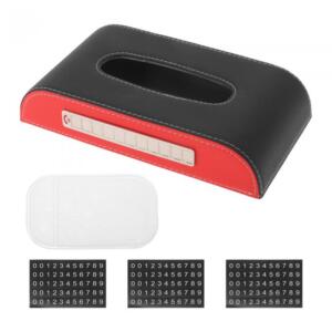 A ABSOPRO 車用ティッシュホルダー 滑り止めマット付き ナンバープレートとスチールリング付き PU製 9.25"x5.12"x1.77" ブラックベージュ 1個