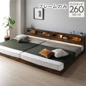 ベッド ダブル 国産ポケットコイルマットレス付き ヴィンテージ ブラウン 低床 棚付き 宮付き 宮棚付き コンセント付き すのこ フロアベッド ローベッド 低床ベッド すのこベッド すのこベット ローベット フロア ベット ダブルベッド ダブルベット