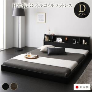 【ポイント20倍】ベッド 日本製 低床 連結 ロータイプ 木製 照明付き 棚付き コンセント付き シンプル モダン ブラック シングル 日本製ボンネルコイルマットレス付き【代引不可】