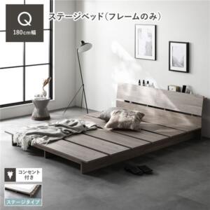 ステージベッド 棚付 ステージタイプ シングル 国産ポケットコイルマットレス付 ハード グレージュ フレーム幅120cm マットレス幅97cm 宮付 コンセント 専用パッド 頑丈 通気性 ローベッド すのこベッド ベッドフレーム フロアベッド 寝具 ベッドルーム 寝室