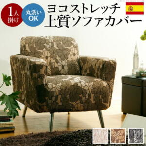 スペイン製ストレッチフィットソファカバー FLORES〔フロレス〕アーム付き 1人掛け用 ソファーカバー ストレッチ 肘付き 1人掛け