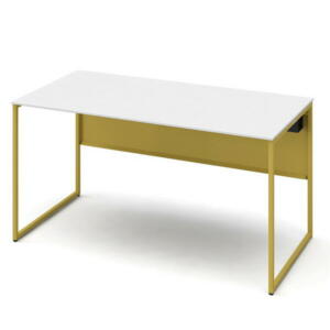 CFL-147-Z571のサイズは、幅1400mm、奥行700mm、高さ720mmです。 天板は1枚で、配線機能はありません。 天板素材はメラミン化粧板、エッジはスクエアエッジです。 脚部は4本脚で、丸脚仕様です。 キャスター、収納、幕板、棚は付いていません。脚素材はスチールです。