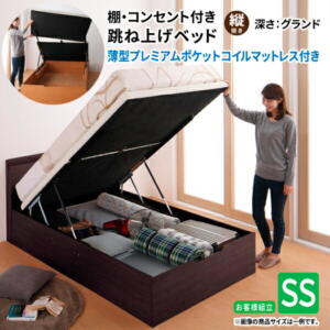 本商品はお取り寄せ商品のため、稀にご注文入れ違い等により欠品・遅延となる場合がございます。誠に恐れ入りますが、何卒ご了承ください。また、以下の場合には追加送料がかかる場合がございます。・北海道、沖縄、離島および一部地域への配送時・大型商品の複数購入時・同梱区分が異なる商品の複数購入時【出荷目安】:3 – 5営業日 ※土日・祝除く【同梱区分】:TS 3【梱包サイズ】:大型商品【代引き決済】:不可【商品の色やサイズについて】こちらは「収納ベッド セミシングル【横開き】【Clory Short】【ポケットコイルマットレス付】 ダークブラウン ラージ ショート丈ガス圧式跳ね上げ収納ベッド【Clory Short】クローリーショート」の商品ページです。商品画像や説明文には色違いやサイズ違いの商品情報が載っている場合がございますのでご確認ください。■本商品のサイズ、色違い、関連商品はこちら【配送希望日時指定について】・この商品は、配送希望日をご指定可能です。・配送時間帯は 9 – 14 時、または 12 – 18 時 のいずれかとなります。ご指定いただいた時間帯に近い方でご希望を承ります。・配送希望日は出荷目安(最長)の 3 – 28 日後の間でご指定ください。・商品の入荷状況、配送地域、配送業者の状況等によって、配送日時のご希望に沿えない可能性がございます。・ご注文が土日祝日の前日の場合、最短での配送希望日を承ることができない可能性がございます。・最短での配送をご希望の場合は、指定なしでご注文ください。【ご注意事項】・商品注文後のキャンセルや返品は承りかねます。・本商品は離島への配送ができません。・大型商品は出荷から到着までに 3 – 5 日程度かかる場合がございます。・商品は玄関での引き渡しとなります。室内への搬入や組立設置は承ることができません。商品スペック【商品名】ショート丈ガス圧式跳ね上げ収納ベッド【Clory Short】クローリーショート【サイズ】本体最大外寸セミシングル:(約)199×82×80cm床から床面までの高さ:(約) 37cm収納部有効内寸セミシングル:(約)171×77×31cm【材質】プリント化粧繊維板【耐荷重】全サイズ共通(約)180kg【その他】2口電源コンセント(1500W)【生産国】日本【カラー】ダークブラウン/ナチュラル/ホワイト【重量】セミシングル:(約)67kg【梱包サイズ】セミシングル:(約)4X84X39cm・3kg、86X187X7cm・29kg、80X64X20cm・12kg、182X35X8cm・15kg、88X19X83cm・12kg※各サイズ、重量は概算になります。※本製品は、組み立て品です。※お客様自身で組み立てる場合は、プラスドライバーをご用意いただき、必ず2人以上で作業を行ってください。(組み立て時間約60分)※この商品は、付属のマットレスでダンパーのガス圧の強さが調整しておりますので、必ず付属のマットレスでのご使用をお願い致します。※こちらは5梱包でのお届けになります。※この商品は、マットレス及び床板梱包サイズが大きくなっております。搬入経路のサイズをお確かめください。※製品の仕様・デザインは、予告なく変更する場合がございます。予めご了承ください。※写真の色調は、モニターの機種や設定により実際の商品と異なる場合がございます。●ショート丈ポケットコイルマットレス●【サイズ】セミシングル:幅80×長さ180×高さ17cm【材質】2mmポケットコイルスプリング(コイル数/SS:336)ウレタンフォーム、ポリエステル100%張り地、両面多針キルティング加工【生産国】中国【商品重量】セミシングル:約16kg【梱包サイズ】セミシングル:82×182×20cm※1年保証付き商品内容小さいだけじゃない、私のお気に入りベッドショート丈ガス圧式跳ね上げ収納ベッド【CloryShort】クローリーショートMade in Japan(日本製)ショート丈(マットレス全長180cm)カラー/ダークウラウン、ホワイト、ナチュラルサイズ/SS、S選べるマットレス/ボンネルコイル、ポケットコイル組立設置サービス============================CONTENTS(1)シンプルだけどこだわりのヘッドボード(2)寝るスペースの無駄をなくしたショート丈(3)ガス圧式跳ね上げで開閉楽々、横開きで収納楽々(4)安心品質の日本製============================(1)シンプルだけどこだわりのヘッドボードシンプルなデザインのヘッドボードは、コンセント付き、また棚奥行きがあるので多くの用途に対応できます。ベッドの周りに散らかりがちな小物を、すっきりとまとめられる棚。寝る前に読みたいお気に入りの文庫本や、CD、メガネや目覚まし時計はここにひとまとめにして。また大好きな雑貨やインテリア小物をディスプレイするスペースとして。あると便利なコンセント付き。携帯電話の充電はもちろんタブレットなどの電子機器、照明にも役立ちます。ここにあると配線がごちゃごちゃすることなくすっきり! (2)寝るスペースの無駄をなくしたショート丈自分は小柄なので通常の丈のマットレスだとやたら大きく落ち着かないし、またスペースも無駄遣い。そんな寝るスペースの無駄をなくしたのが、このクローリーショート。通常のマットレスの部
