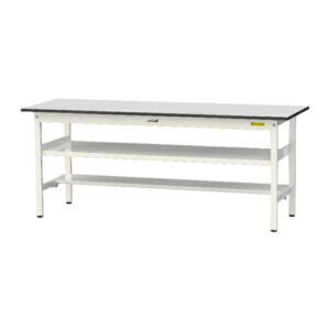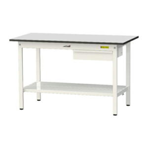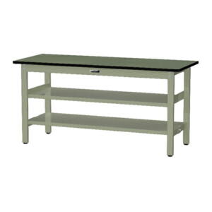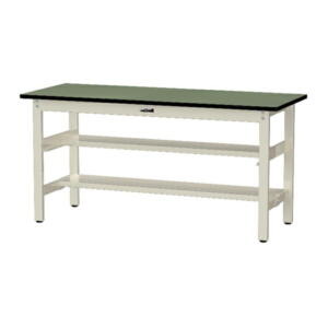 ●u.ヤマキン/山金工業 【SJR-1560TTS2-GG】ワークテーブル 500シリーズ 固定式 中間棚付 H740mm 塩ビシート天板 グリーン 組立式