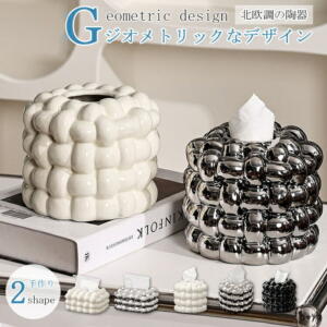 【北欧調/陶器/めっき/幾何/2タイプ】ティッシュケース おしゃれ ティッシュペーパー トイレットペーパー 手作り 収納 インテリア 雑貨 デザイン 卓上 高級感 高品質 家庭用 ブラック 銀めっき ホワイト ユニーク 浴室 お風呂 洗面台
