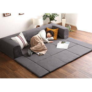 ■サイズ・色違い・関連商品■スエード調生地 ブラウン/ベージュ■スエード調生地 グリーン/グリーン■麻風織り生地 ブラウン■麻風織り生地 ブルー■麻風織り生地 グレー[当ページ]関連商品の検索結果一覧はこちら■商品内容使い方自由なフロアコーナーソファ・マット付きで様々なシーンで活躍・オールシーズン快適フロア生活・背もたれは2段階で高さ調整可能■圧迫感なく広々使えて いろんなシーンで大活躍・ごろ寝用のマットとして・お子様のプレイマットとして・マットを外してコーナーソファとして・2セットを組み合わせれば広々ソファに■夏も冬もいつでも オールシーズン快適に使用可能マット付きだからいつでも心地いい&こたつにぴったり■心地いいフロア生活へ 厚み4cmのふっくらマット付きウレタンフォームパッドが足音を軽減・毛足が無いのでお掃除もしやすい■くつろぎを追求 調整できる背もたれ&クッション・クッションを枕代わりにしても・ゆったりくつろげるしっかり座面奥行43cm・高密度&高硬度「マーブルフォーム」ウレタン使用■安心・安全をお届け 日本製で品質にこだわりを国産的な品質マネジメントシステム企画「IOS9001」を取得した国内で生産しています。■カラーバリエーション・グレー・ブルー・ブラウン・ブラウン×ベージュ・グリーン×グリーン■商品スペック■セット内容麻風織り生地 2Pソファ 2個、コーナーソファ 1個、ラグマット 1枚、クッション 5個■サイズ(約)全体サイズ:幅117〜200×奥行117〜200×高さ34〜38cm各サイズ: 2Pソファ 約105×72〜95×38cm コーナーソファ 約72×72×38cm ラグマット 約105×105cm■製品重量(約)29kg■素材中材:ウレタンフォーム、ポリエステルわた側生地:ポリエステル100%■生産国日本製(側地 中国製)【商品についてのご注意事項】・本商品は、カバーを取り外してのお洗濯は不可の商品になります。・汚れた場合は、水または薄めた中性洗剤をつけた布を硬く絞って、ふき取って下さい。・カバーにファスナーが付いておりますが、商品製造上に使用するものですので、中材を出し入れするためのものではございません。 元に戻せなくなりますので、絶対に中材を出さないようにお願いいたします。・写真の色調はモニターの機種や設定により実際の商品と異なる場合があります。・製品のデザイン・仕様・梱包は予告なく変更することがございます。あらかじめご了承ください。【使用上のご注意】ホットカーペット可※床暖房はホットカーペットよりも熱が高くなる恐れがありますので、ご使用をお控え下さい。【配送上のご注意】・北海道、沖縄、離島の配送はできかねます。・この商品は、配送希望日と時間帯をご指定可能です。・配送希望日は出荷目安(最長)の 3 – 30 日後の間でご指定ください。・最短でのお届けをご希望の場合は「指定なし」を選択してください。 ※発送先エリア等で御希望に添えかねる場合があります。 ※在庫状況により、出荷が遅れる場合がございます。・配送は全て玄関先でのお渡しとなります。配送員による室内への搬入・組立てはお受けできかねます。・ご購入前に商品が階段や廊下を通ることが可能かをご確認ください。■送料・配送についての注意事項●本商品の出荷目安は【2025年1月下旬より順次出荷】となります。●お取り寄せ商品のため、稀にご注文入れ違い等により欠品・遅延となる場合がございます。●本商品は仕入元より配送となるため、北海道・沖縄・離島への配送はできません。[ OAAD-1703 GY ]
