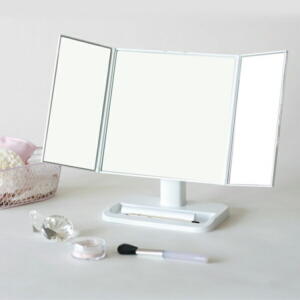 メイクアップミラー(ホワイト/白) 折りたたみ三面鏡/卓上ミラー/飛散防止加工/角度調整可/ワイド/メイク/整理 収納 トレイ付き/折り畳み/完成品/NK-242 白 スペース節約のワイド卓上ミラー 美しさを映し出すメイクアップミラーで、輝く自分を映し出すワイドミラー 清潔感あ