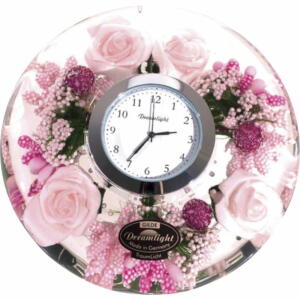 まるで本物の様な花々をガラスの中に閉じ込めたハンドメイドの製品です。実用的な時計としても、お部屋を華やかに彩るインテリアのオーナメントとしても、マルチに使えます。【パッケージサイズ】120×70×220mm【内容】φ110×40mm、時計部:φ45mm、アクリル台【材質】ガラス、シルクフラワー、ジェル【電池】添付(ボタン電池1個)【生産国】ドイツ(時計:中国)【パッケージ形態】化粧箱入ドリームライト ドリームクロック リトルローズ CDD7297CL