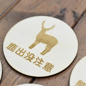レーザー加工で仕上げたオリジナルサインプレート 素朴でかわいいぬくもりのあるデザインです。 *裏面に両面テープは貼っておりません。 壁やドアに合ったテープなどで貼り付けてください。 レーザー加工の特徴として、周りは茶色くなります。 多少の色むらやキズ等がございます。 サイズ:Sサイズ 約12cmx4cmxD0.4cm 素材:合板 仕上げ:UV印刷