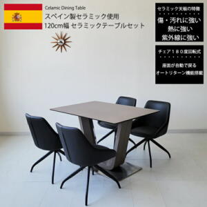 【全品P10倍】 セラミックテーブル ダイニングテーブルセット 幅140cm 収納付き 回転チェア ダイニングチェア オートリターン PVC スチール 高機能 耐熱 耐摩耗 セラミック MDF グレー ブラック 省スペース モダン 高級 北欧 清潔 木目柄 食卓 キズに強い