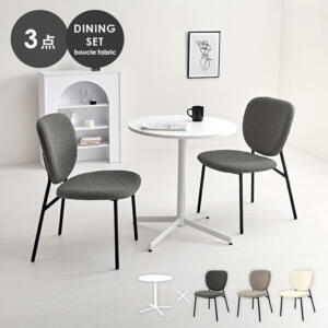 【レビュー特典付き】テーブルセット 2人用 カフェテーブル 幅65cm コンパクト 2人 エレガント 丸 2人掛け 椅子 テーブルセット おしゃれ 兼用 ダイニングセット かわいい 円 一人暮らし ダイニングチェア 高級感 サロン 布 ブークレ生地
