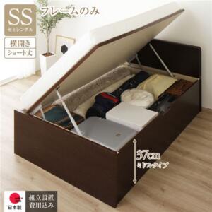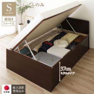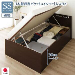 ■サイズ・色違い・関連商品関連商品の検索結果一覧はこちら■商品内容本商品は「組立設置サービス利用する」配送でございます。ヘッドレス跳ね上げベッド Headless Point1 すっきりデザイン ヘッドレスだから方向を選ばず、お部屋にも合わせやすい。 Point2 圧倒的な収納力 収納力の秘密は跳ね上げ構造、埃も入らず長物も収納可能。 Point3 まるでセミオーダー 開閉タイプ・深さ・カラーを自由に選べる。 Point4 安心の日本製 作ったのは日本の老舗家具メーカー ガス圧シリンダーも日本製だから長く使える。【01すっきりデザイン】 ・ヘッドレスだから見た目すっきり、置き場所自由。 ・お部屋に合わせやすいヘッドレス ヘッドレスだから方向を選びません。 窓なども塞がずに置きたい向きに置けます。【02圧倒的な収納力】 ・ベッド下一面が丸々使える! 圧倒的な収納力を生む跳ね上げ構造 ・一般的な引き出し2杯ベッドの場合 収納物を引き出すスペースが必要! だから引き出しの大きさにも限界がある。 本製品の場合ベッド下一面が収納可能に! 埃も入りにくく、長物も収納可能。【03まるでセミオーダー】 ・縦・横・深さ・カラーが選べる! お部屋に合わせて選べる開閉タイプ 縦置き ベッドサイド側にスペースがない所に設置する場合おすすめ。 横開き ベッドの足元側にスペースがない所に設置する場合おすすめ。 縦開き&横開き 2台並べても開閉できる構造なので、組み合わせてお使いいただけます。 ・壁付け設置可能! スライドしながら開閉するので、壁にぴったりつけて設置することが出来ます。 ・収納量で選べる深さ ロータイプ(床高30cm/収納高24cm) スーツケースやラグが収納可能。 大容量収納かつ、圧迫感のない見た目のベッドをお探しの方に。 ミドルタイプ(床高37cm/収納高32cm) 中型のスーツケースや季節家電まですっきり収納。 収納力と見た目のバランスの取れた、おすすめのサイズです。 ハイタイプ(床高44cm/収納高38cm) クローゼットにも劣らない圧倒的な収納力。 造り付けの収納スペースには収まりきらないものもしっかり収納。 ・お好みで選べる3カラー Dark-brown ダークブラウン Ivory アイボリー Natural ナチュラル【04安心の日本製】 細部まで丁寧なつくりで使いやすい ・マットレス止め マットレスを乗せたままでも開閉できる、ずり落ち防止金具付き。 ・BOXカバー シリンダーを気にせず収納できます。 ・底板 底板付きなので、荷物で床を傷めません。 ・フェルト サイドフレームには床板とのきしみ防止のフェルト付き。 ・湿気防止口 収納スペースの湿気を逃がし、開閉時には床板のつかみ口にもなる。 ・ぴったり並べて使用可能 2台並べても隙間ができないので、並べてご利用いただけます。 ・国産ガス圧式シリンダーでスムーズ開閉 ガス圧シリンダーももちろん日本製。 1万回の開閉テストに合格しているので安心して長くお使いいただけます。 ※1日3回開閉した場合、約10年に相当 ・職人と機械がつくりあげる「日本品質」 創業50年、関東の老舗国産家具メーカー。創業以来、収納家具の生産技術を 徹底的に磨き続け完成させたのが職人と機械を組み合わせた 半自動一貫生産ライン。そこで作られる日本の住環境に寄り添うベッドは 設計・製造・組立の細部まで妥協せず、丁寧に作り上げた「日本品質」 ぜひ、その使いやすさをご実感ください。 ・低ホルムアルデヒドF☆☆☆☆ ホルムアルデヒドはシックハウス症候群になる原因の一つで家具や 芯材や塗装にも含まれています。ご家族皆様が安心して ご利用いただけるよう本商品は低ホルムアルデヒド材F☆☆☆☆を 使用しております。■セットマットレスもご用意・日本製薄型ポケットコイルマットレス 両面仕様/厚さ12cm 袋に包まれたコイルが独立して沈み込むため、 身体のラインに沿い自然な寝姿勢を保つ体圧分散構造。 波動が伝わりにくく二人でのご使用にもおススメです。 マット内部の蒸れを防ぐ通気孔付き・3ゾーンポケットコイルマットレス 片面仕様/厚さ12cm 荷重のかかりやすい中央部分のコイルを太くし、腰回りの負担を軽減した3ゾーン構造。 過度な沈み込みを抑えたい方におすすめです。 柔らかい肌触りのニット生地【狭い部屋にピッタリなショート丈タイプもご用意しました】 「部屋が狭くてベッドが置けない」 「小柄だからベッドを小さくして部屋を広く使いたい」 そんなお悩みを解消します。 通常丈タイプは長さが200cm程。 ショート丈タイプは185cmのコンパクトサイズ 女性の一人暮らしや子供部屋に適したサイズです。 ※ショート丈はセミシングル・シングルのみ、またロータイプの展開がありません。 ※ナチュラルのショート丈サイズは横開き ハイタイプのみとなります。■商品スペック■ベッドフレーム本体【サイズ】 縦開き ショート丈セミシングル:(約)幅83×長さ185cm ショート丈シングル :(約)幅98×長さ185cm 通常丈セミシングル :(約)幅83×長さ200cm 通常丈シングル :(約)幅98×長さ200cm 通常丈セミダブル :(約)幅12
