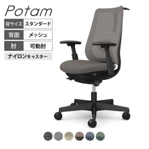 ■ 商品スペックシーティングにサステナブルの発想を取り入れたPotam(ポータム)。不要になった端材から生まれた張材の活用や、リサイクル樹脂脚を採用することで循環型経済を実現しました。柔らかなラインで構成されたデザインは、場所を選ばず様々なシーンにマッチします。■シンクロリクライニング座面左下のダイヤルでリクライニングの固定と解除が可能です。リクライニング角度:20度■座面高さ調節座面右下の操作レバーにより、座面の上下高さ調節が可能です。上下ストローク:92mm■座面奥行調節座面左下の操作レバーにより、座面の奥行調節が可能です。前後ストローク:40mm■ベンディング機能座った瞬間ソフトなクッションが身体をやさしく受け止めます。背もたれの内部に採用した樹脂シェルのグリッドが、背中の動きにあわせて変形するため、長時間のハードワークでも快適です。■リサイクルで生まれ変わるRe:birth製品として使用済みの樹脂脚を回収し、分別・粉砕を経て、再び新たな樹脂脚として生まれ変わったリサイクル脚をラインナップしています。■ラウンドフィットバック背メッシュタイプは奥行きのある立体的な形状のフレームに、部位ごとにメッシュのテンションを変えて張ることで腰回りのホールド感をアップ。まるで包み込まれるような座り心地を感じられます。■アジャストアーム(3Dアーム)肘パッド裏にあるボタンを押すことで、高さの調節が可能です。また、肘パッドは前後左右に動かすことができます。上下:100mm、前後:50mm、内側:20度、外側:20度サイズW635×D530〜570×H935〜1027(SH420〜512)mm脚外径:Φ660mm重量材質背フレーム・座シェル・脚・肘:樹脂成型品支基:スチールキャスター:Φ60ウレタンキャスター(ノーマル)張地:メッシュ・ファブリック機能シンクロリクライニング座面高さ調節座面奥行調節3Dアーム形態完成品備考シリーズ名:Potam(ポータム)ハンガー無しランバーサポート無しグリーン購入法適合品※ルート配送の為、時間指定はできません。(配送時間:9〜17時)※受注生産品については別途ご案内申し上げます。※お客様都合による返品・交換はお受けしておりません。※イメージ画像のその他の家具・小物は付属しておりません。※商品は原則、1階(軒先)または車上渡しとなります。【検索キーワード】GG2228 G18192 G18193 G18194 G18195 G18196 G18197 CF81ZW F1K0 F1K1 F1K2 F1K3 F1K4 F1K5 ダークグレー グレー 灰色 ベージュ ダークブラウン ブラウン 茶色 インディゴ 紺 ダークグリーン グリーン 深緑 緑 オカムラ OKAMURA 岡村 ポータム Potam スタンダードバック ホワイトフレーム 背メッシュ 可動肘 アジャストアーム 3Dアーム ウレタンキャスター インターロック メッシュチェア ファブリックチェア オフィスチェア オフィス家具 家具 オフィス チェア 椅子 いす イス 会社 デスクワーク OAチェア デスクチェア テレワーク 在宅 リモートワーク SOHO 在宅勤務 リモート 20230421新商品ポータム