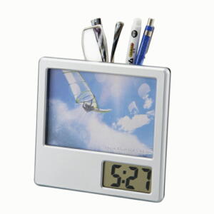 「送り先が、北海道・沖縄・離島 他、特殊地域の場合、ショップにて注文確認後に別途追加送料をご案内させていただく場合がございます。」「お客様都合でのキャンセルの場合、出荷前後にかかわらずキャンセル料などの手数料が発生いたしますので予めご了承ください。」「メーカーより取り寄せ商品のため、在庫状況によっては欠品・廃盤の可能性があります。あらかじめご了承ください。」123×95mmの写真が入れられる時計付ペンスタンドです。背面のペンスタンドは折りたたみ可能で、壁掛けとしても使えるユニークな構造になっています。サイズ14.2×6.5×13.7cm個装サイズ:16×3×15cm重量個装重量:230g素材・材質ABS樹脂仕様機能:時計、カレンダー、フォトフレーム、ペンスタンド機能付使用電池:単4乾電池×1本(別売)生産国中国fk094igrjs
