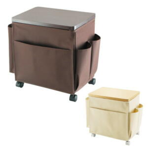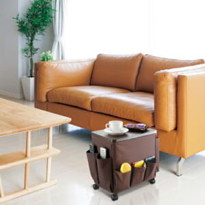 ■サイズ・色違い・関連商品■ホワイト■ブラウン[当ページ]関連商品の検索結果一覧はこちら■商品内容ティッシュや新聞、リモコンなどソファや座椅子のそばにあると便利なものをまとめて収納できるサイドテーブルワゴン。ワゴン内部には大きな収納スペースがあり、かさのある小物類をたっぷり収納でき、カバー付きで外からの目も気になりません。ワイドポケットにはA4サイズがすっぽり収まるので、雑誌や新聞等の収納などに便利。ロングポケット×2は長いリモコンの収納に、ショートポケット×3はよく使うメガネやメモ帳などの小物類収納にぴったり。ティッシュホルダー付き。スタイリッシュな木製フラット天板。キャスター付きで移動もラクラク。■商品スペック【サイズ(約)】幅35×奥行23×高さ37.7cm【材質】本体:ポリプロピレン布地ポリエステル天板:プリント化粧パーチクルボード【カラー】ブラウン■送料・配送についての注意事項●本商品の出荷目安は【2 – 6営業日 ※土日・祝除く】となります。●お取り寄せ商品のため、稀にご注文入れ違い等により欠品・遅延となる場合がございます。●本商品は仕入元より配送となるため、沖縄・離島への配送はできません。