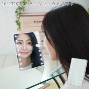 【★ポイント5倍★】10/4~10/9開催!お買い物マラソン(要エントリー) 不二貿易 16LED卓上ミラー ジェシカ ホワイト【入数:6】エクステリア インテリア 家具 新生活 生活雑貨 ホーム