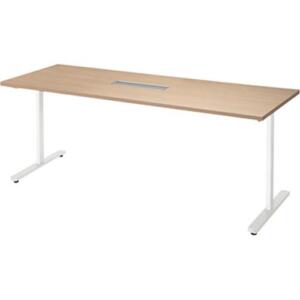 ■NAIKI ミーティングテーブル(配線付/長円テーブル モプト MP型/天板:シルクウッド 脚:クリアーホワイト/W1500×D750×H720〔品番:MP1575WRHWS〕【2145618:0】[送料別途見積り][法人・事業所限定][外直送][店頭受取不可]
