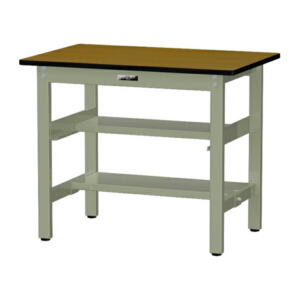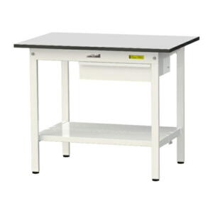 ●u.ヤマキン/山金工業 【SUR-1260UTT-GYW】ワークテーブル 150シリーズ 固定式 キャビネット付 H740mm 全面棚板付 RoHS2指令対応塩ビシート天板 組立式