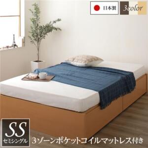 【送料無料】〔組立設置サービス付き〕 収納 ベッド 薄型 宮付き 通常丈 セミシングル 3ゾーンポケットコイルマットレス付き ダークブラウン 日本製 フレーム 2口 コンセント 棚付き 宮棚付き 引き出し収納 チェストベッド チェストベット 収納ベット セミシ...【代引不可】