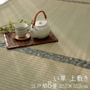 レビュー投稿で次回使える2000円クーポン全員にプレゼント■サイズ・色違い・関連商品■江戸間2畳(約174×174cm)■本間2畳(約191×191cm)■江戸間3畳(約174×261cm)■本間3畳(約191×286cm)■江戸間4.5畳(約261×261cm)■本間4.5畳(約286×286cm)■江戸間6畳(約261×352cm)[当ページ]■本間6畳(約286×382cm)■江戸間8畳(約348×352cm)■本間8畳(約382×382cm)関連商品の検索結果一覧はこちら■商品内容珍しい格子柄タイプの無地の上敷きです。上敷きを敷くだけで畳のお部屋をリフレッシュ出来ます。日焼けしてしまった畳のリフレッシュに、新品の畳を汚さないためのカバーにご使用下さい。長さ110〜115cmの国産(九州産)い草を使用しています。そのうち約91cmを使用しています。ヘリ際はある程度白みを帯びます。(日焼けではありません、い草の根元と先端部分の色です。)い草は長いものほど高級になります。い草は先端部分が赤茶色く、根元が白く真中が青(緑)色です。真中の良質な青の部分を多く使用するほど、丈夫で綺麗な仕上がりとなります。またイ草は使用するうちに日焼けをしますが、真中の青の部分を多く使用したものほど、全体が綺麗にムラなく日焼けし、味が出ます。国産(九州産)のい草を使用しています。国産い草は一本一本が太く、表皮が厚く繊維がキメ細かいので弾力性があり、耐久性に優れています。い草には空気の清浄化作用、湿度の調節作用があり、汚れにくいといった特徴があります。い草に青森ヒバ加工を施しています。(抗菌、防臭効果)表裏の両面が使えて経済的です。■商品スペック【サイズ】江戸間6畳(約261×352cm)【素材】い草(九州産) ※変り織ヘリ:ポリプロピレン、ポリエチレン【原産国】日本(純国産)【洗濯表示】洗えません。【配送日時指定について】・この商品は、配送希望日と時間帯をご指定可能です。・配送希望日は出荷目安(最長)の 3 – 30 日後の間でご指定ください。・最短でのお届けをご希望の場合は「指定なし」を選択してください。※配送エリア(例:沖縄・離島)により、配送希望日のご指定をお受けしかねる場合がございます。【特記事項】画像のカラー・サイズとは異なる場合がございます。商品名のカラー・サイズをご確認下さい。【サイズ表記について】商品のサイズ表記は約となっております。商品の製造過程上、若干のサイズ誤差が生じることがございます。あらかじめご了承ください。■送料・配送についての注意事項●本商品の出荷目安は【2 – 4営業日 ※土日・祝除く】となります。●お取り寄せ商品のため、稀にご注文入れ違い等により欠品・遅延となる場合がございます。●本商品は仕入元より配送となるため、北海道・沖縄・離島への配送はできません。