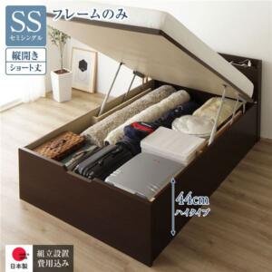 〔お客様組み立て〕 収納 ベッド ショート丈シングル 跳ね上げ式 縦開き 深さ44cm ハイタイプ フレームのみ ダークブラウン フラットヘッド ヘッドボード付き 日本製跳ね上げベッド 国産ベッドフレーム インテリア家具 寝室家具【代引不可】[21]