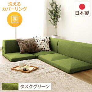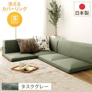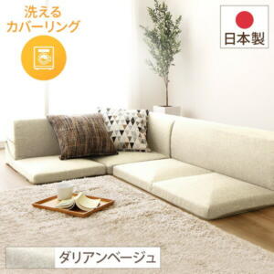 ■サイズ・色違い・関連商品カラー・生地展開ダリアン生地・ベージュダリアン生地・ブラウンダリアン生地・グリーンダリアン生地・レッドダリアン生地・ブラックダリアン生地・ブルーダリアン生地・グレータスク生地・ブラウンタスク生地・グリーンタスク生地・ターコイズブルータスク生地・レッドタスク生地・グレータスク生地・ブラウンコールテン生地・ベージュコールテン生地・グレーコールテン生地・ネイビーコールテン生地・イエローコールテン生地・グリーンコールテン生地・レッドPVC生地・アイボリーPVC生地・ブラックPVC生地・ブラウン■商品内容■ソファーの高さが抑えられるので空間広々フロアタイプなので圧迫感が無く、狭いリビングにも最適。座面が低いのでコタツとの相性もバッチリです。■好みに合わせて組み換え可能、スタイル自在分割タイプなのでお部屋やくつろぎ方に合わせて、お好みのスタイルに組み換えできます。1人掛け、2人掛けは背もたれを倒すことができ、ごろ寝しながらくつろげます。■ご家庭で洗えるカバーリングカバーは全面カバーリングタイプなのでいつでも洗濯可能です(洗濯ネット使用必要)。※コールテン生地・PVC生地は洗濯不可。お子様が汚してもサッと洗っていつでも清潔です。ペットのいるご家庭にもおすすめです。※カバーはお客様取り付けになります。(約15分)■安心の日本製国内の工場で熟練の職人が一つ一つ丁寧につくりました。耐久性の高い「モールド成型」されたウレタンを使用。ヘタリに強く弾力性があります。※カバーは中国製です。■お子様にも安心設計座面が低いので上り下りしやすく、金属や木枠が入っていない、オールウレタン素材なので小さなお子様にも安心です。■5種類の生地から選べます 「ダリアン生地」・・・2色の糸で織られた耐久性と高級感のある生地です。 「タスク生地」 ・・・毛足がなく、サラサラとして肌触りの良い生地です。 「PVC生地」・・・レザー調でかっこいい雰囲気。汚れたら拭き取れるのでお手入れ簡単です。 「コールテン生地」・・・ファッション性が高く、肌触りも見た目もぬくもり感のある素材です。 「デニム調生地」・・・デニム生地のような風合いで、カジュアルな雰囲気です。■商品スペック■サイズ(約) 1人掛:幅50cm×奥行75〜98cm×高さ11〜36cm 2人掛:幅100cm×奥行75〜98cm×高さ11〜36cm コーナー:幅75cm×奥行75cm×高さ36cm 座面厚11cm■重量(約) 20kg/set■梱包サイズ(約) 幅74cm×奥行74cm×高さ71cm■素材 張地:ポリエステル100% クッション材:ウレタンフォーム(モールド成型)■生産国 本体/日本 カバー/中国製■ご注意事項 本商品は、北海道・沖縄・離島への配送はいたしかねます。あらかじめご了承ください。■送料・配送についての注意事項●本商品の出荷目安は【2 – 6営業日 ※土日・祝除く】となります。●お取り寄せ商品のため、稀にご注文入れ違い等により欠品・遅延となる場合がございます。●本商品は仕入元より配送となるため、北海道・沖縄・離島への配送はできません。