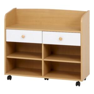 本棚 ブックシェルフ 幅82cm ナチュラル×ホワイト 引き出し2杯 鞄用フック キャスター付き ランドセルラック NORM リビング (代引不可)