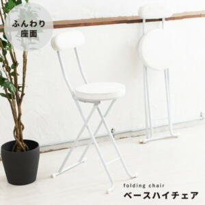 【4脚セット】ベースハイチェア(ホワイト/白) 折りたたみ椅子 カウンターチェア 合成皮革 スチール イス 背もたれ付き コンパクト スリム キッチン クッション パイプイス 完成品 業務用 NK-061_ID014