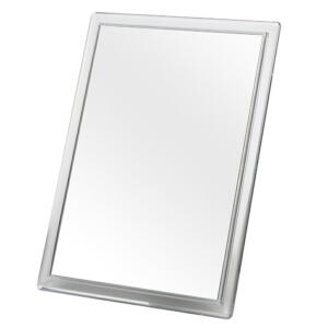 スクエア卓上ミラー(CLEAR) CR〇清潔感のあるクリアフレーム卓上ミラー。 〇お顔全体がしっかり映るミラーサイズでメイクやヘアセットにピッタリ。 〇ありそうでなかったクリアフレームの卓上ミラー。 〇シンプルデザインでどんなテイストのお部屋にも馴染みます。 〇ステイを動かして角度調整が出来ます。 〇折りたたみ可能なので使わない時はすき間や引出しに収納出来ます。商品サイズ(約) : W205×D20×H280mm 商品重量(約) : 0.4kg 完成品 素材 : PS樹脂・ミラー(2mm厚) 生産国 : 中国 ※サイズの誤差は多少生じることがあります。 ご了承下さい。