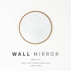 MDF丸形ウォールミラー(47)(ライトブラウン) 直径47cm 鏡 スリム 高級感 ブルックリン 韓国インテリア 海外インテリア 飛散防止加工 壁掛け オシャレ 北欧風 オーバル 日本製 完成品 NK-16