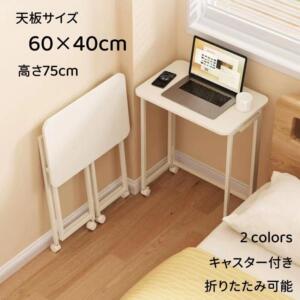 DODOSOSO 折りたたみデスク 幅60×奥行40×高さ75cm 3ステップ展開 折りたたみ時厚さ8cm 省スペース キャスター付き 木目調天板 カーボンスチール テレワークデスク 組み立て簡単 ブラック