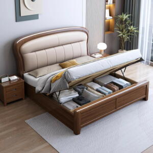 クルミの木の色の実の木のベッド金糸の中国式のシングルダブルのベッド家庭用の寝室の物置高箱の婚のベッドの環境保護の木材です