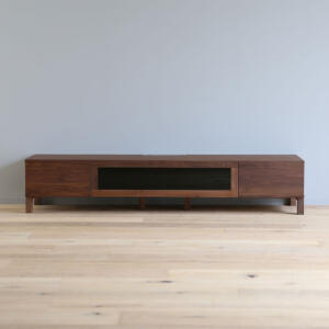 アルダー無垢材を使用した前板の波打ちデザインがおしゃれなTVボード。北欧モダンでシンプルなテイストに仕上がっています。収納も左右の引出しと中央のフラップ扉内にオープンスペースを設け、リビング周りをすっきりとさせてくれます。■注意事項